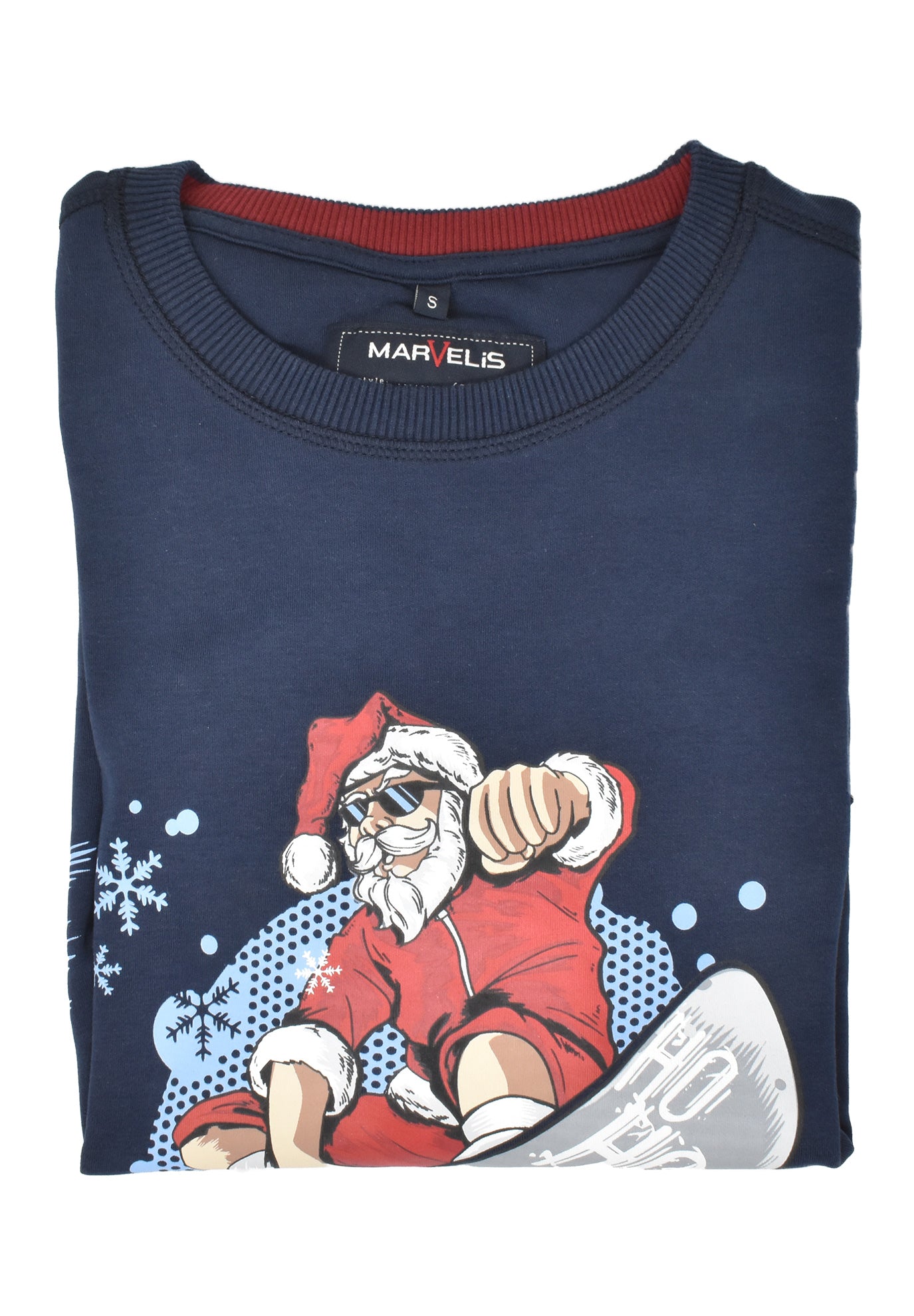 MARVELIS Langarm-Sweatshirt mit Weihnachtsprint in dunkelblau. Das pflegeleichte Pullover ist hervorragend verarbeitet und bietet fantastische Trageeigenschaften.